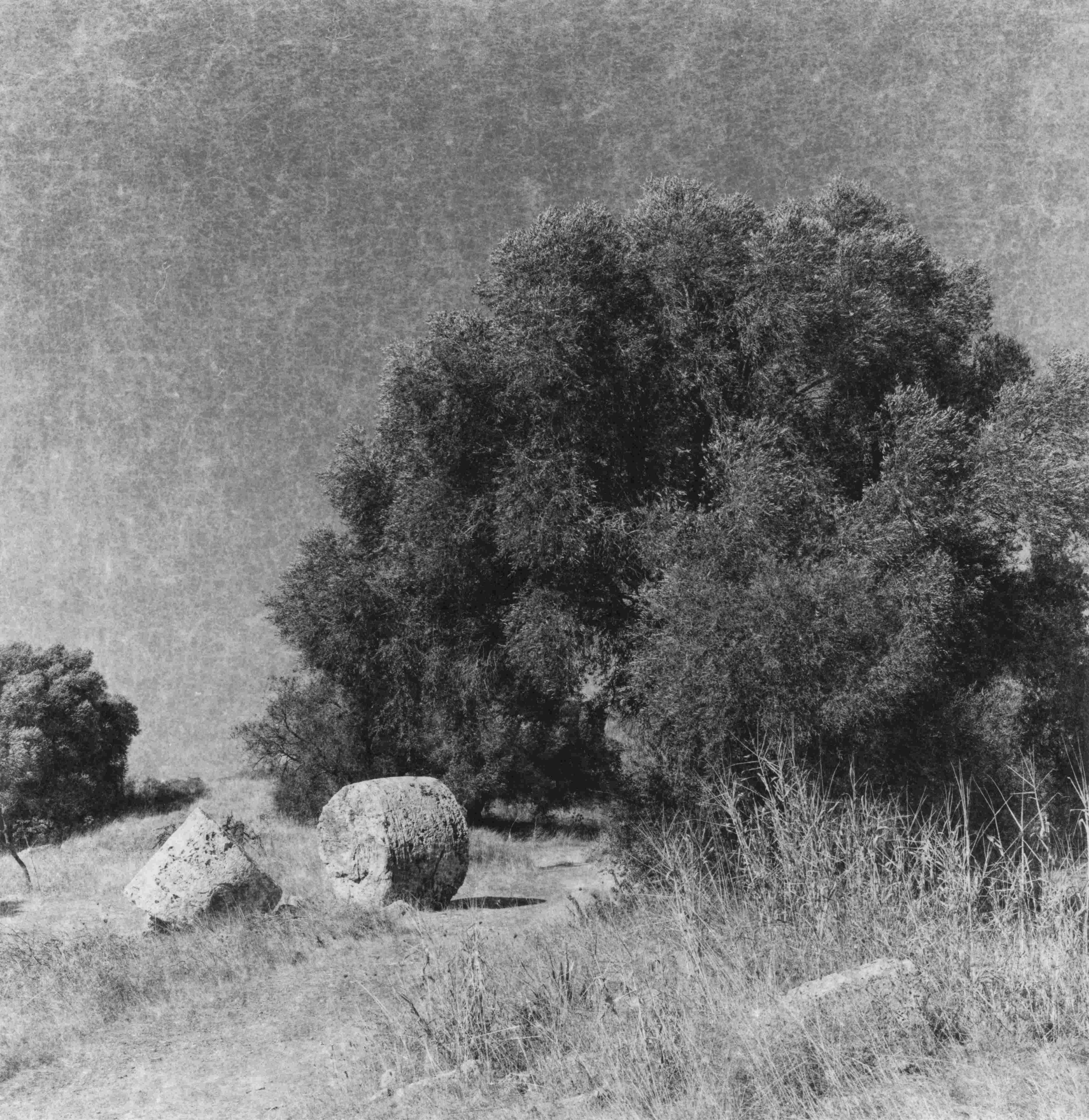 Raymond Escomel s’est nourri des expériences des premiers voyageurs photographes du milieu du XIXe siècle, lorsque toute une génération d’artistes et d’intellectuels est partie à la découverte de l’Orient rêvé en passant souvent par la Sicile ; celles des photographes pionniers anglais instruits par Henry Fox Talbot, puis des Français initiés par Gustave Le Gray dont un hommage lui est rendu ici. Raymond Escomel a voulu être dans la continuité et non dans la rupture en puisant dans l’histoire. Inspiré par leur exemple, il lui a semblé tout naturel d’utiliser le calotype, une technique ancienne qui nous renvoie aux origines de la photographie, à l’origine même du négatif à la base du procédé argentique. Sur le plan esthétique, les fibres du papier qui constitue le support de l’image négative donnent un supplément de texture au rendu photographique qui fait songer à une œuvre dessinée au fusain, ou à une estampe.